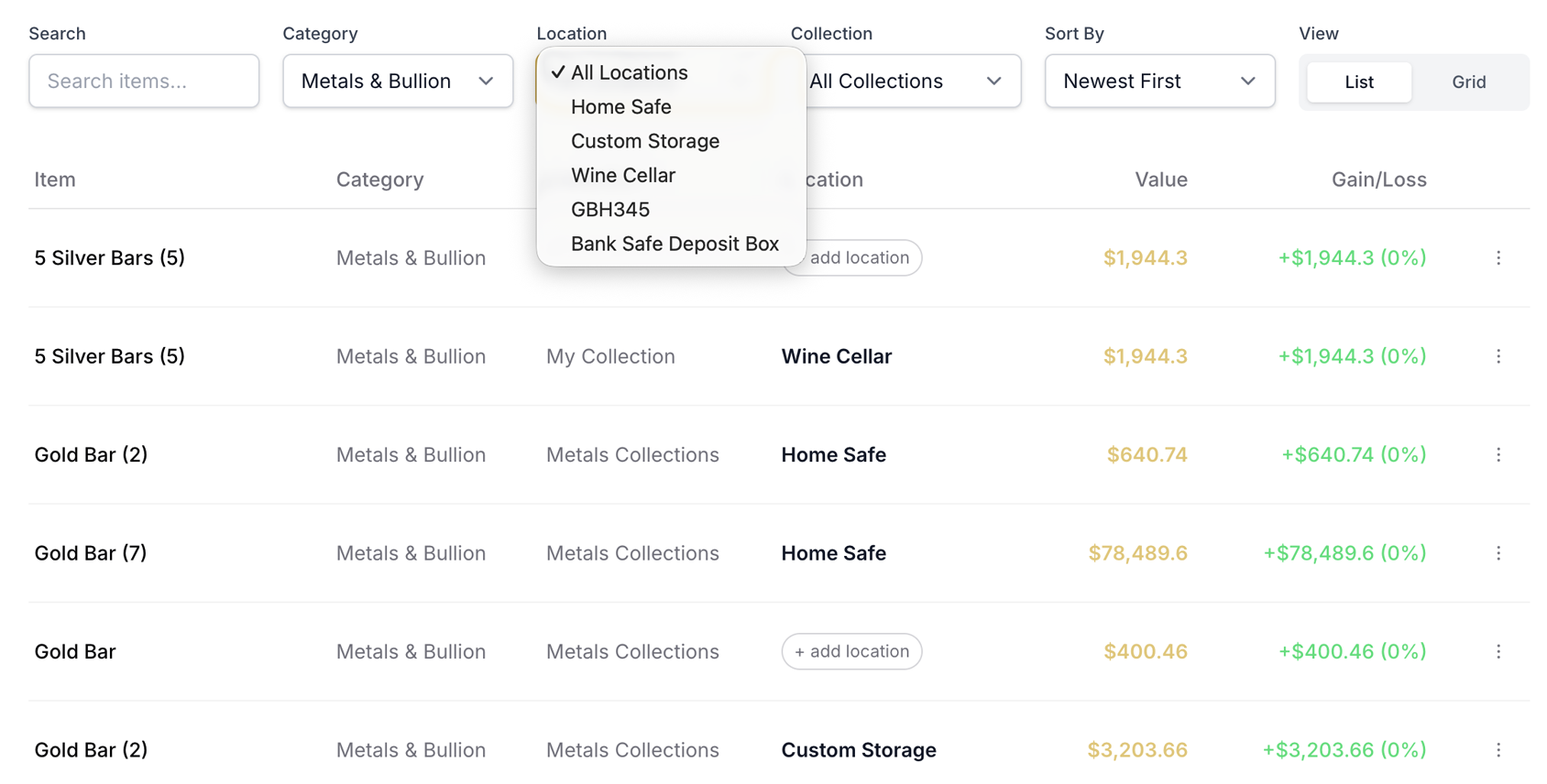 Integrated market pricing for precious metals and supported asset classes keeps your portfolio totals current automatically. Instead of manually tracking values, you can understand the evolving worth of your tangible wealth with clarity and confidence.