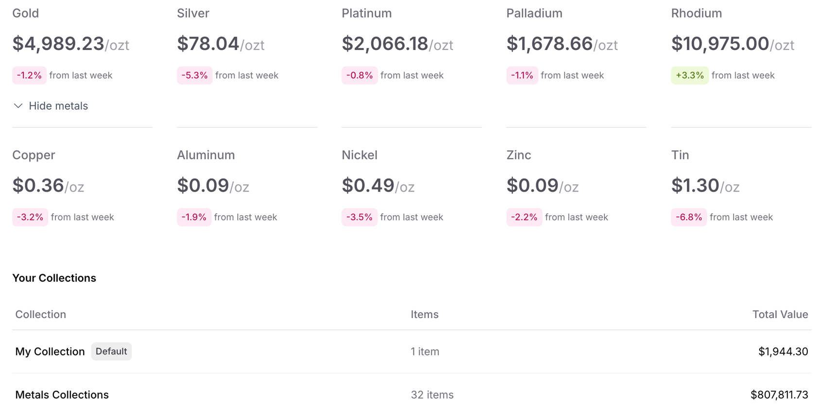 Integrated market pricing for precious metals and supported asset classes keeps your portfolio totals current automatically. Instead of manually tracking values, you can understand the evolving worth of your tangible wealth with clarity and confidence.