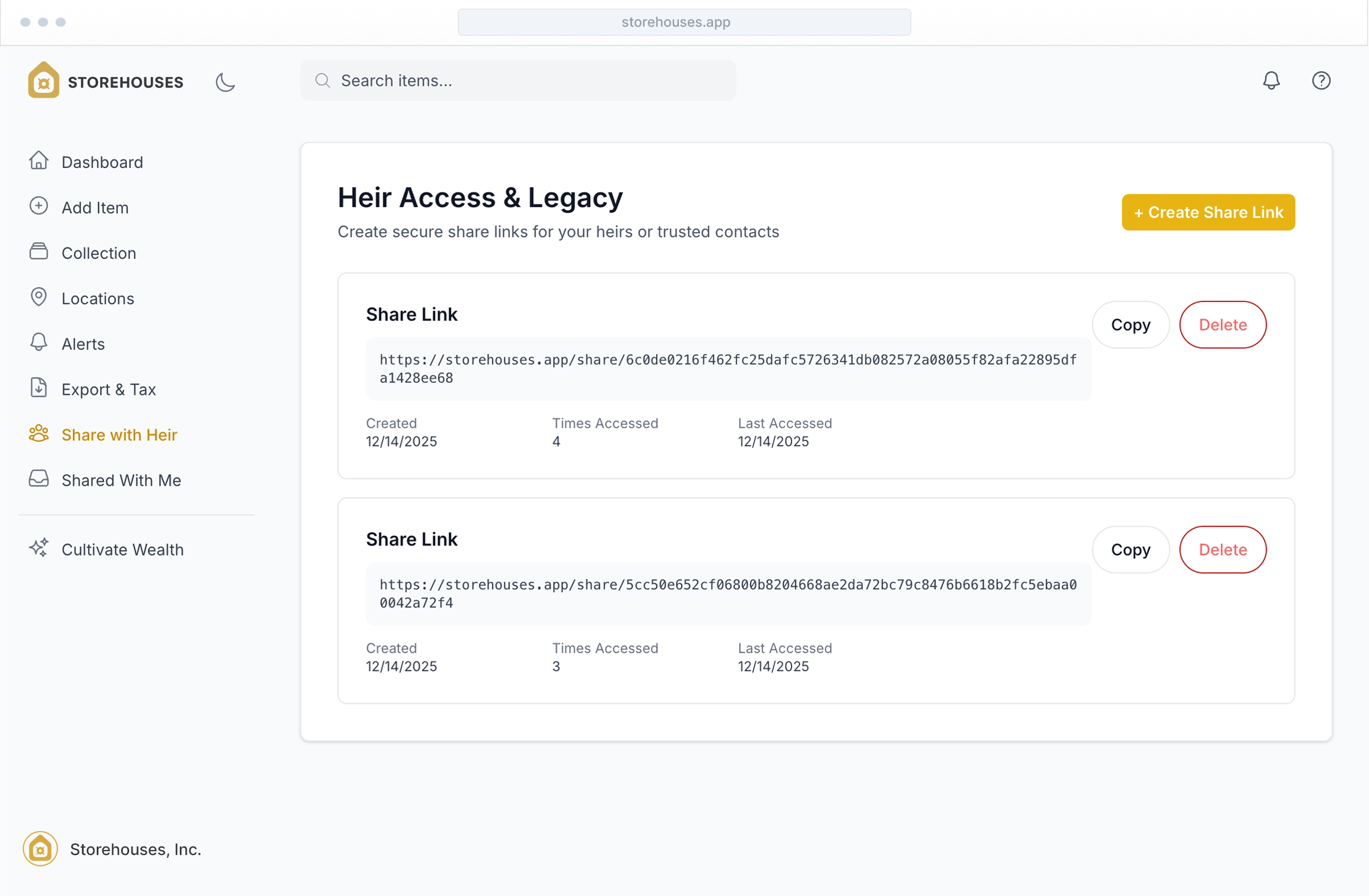 Add items to your collection to keep track of your assets and their value, history, and other important details.